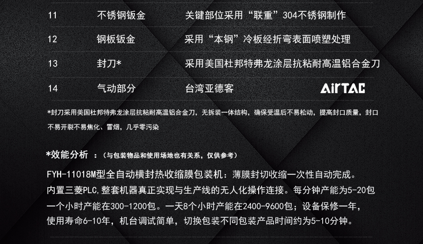 擁有多項(xiàng)專利技術(shù) 數(shù)千平標(biāo)準(zhǔn)廠房 批量標(biāo)準(zhǔn)化生產(chǎn) 可定制開發(fā)和自動(dòng)化流水線搭建! 超前技術(shù)團(tuán)隊(duì) 先進(jìn)加工工藝 高精度加工設(shè)備 近20年專業(yè)研發(fā)經(jīng)驗(yàn)不斷改進(jìn)、創(chuàng)新、突破!我們定位于專注做中高端全自動(dòng)熱收縮膜包裝機(jī),請不要拿我們和不同定位的廠家對比!我們是源頭工廠…