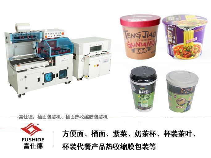 富仕德:FLB-4555A型  桶裝面、紫菜、奶茶杯、杯裝茶葉、杯裝代餐產(chǎn)品熱收縮膜包裝視頻